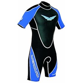 This U.S. Divers' Mercury wetsuit--made of the highest-quality materials available--offers a superior combination of fit, performance, and style. The "shorty" suit is distinguished by its short-sleeve arms and legs and its titanium-blend 3 mm chest panels, which reflect heat back to the body to keep divers and surfers warm in cool currents. The suit also features 2 mm side panels and super-stretch panels under the arms, both of which give the wearer added flexibility whether twisting to the side or reaching upward. And thanks to the neoskin seals on the neck, legs, and wrists, the suit seals out water with aplomb. Other details include flat-lock stitching for extra comfort, a heavy-duty corrosion-free #10 YKK zipper on the back, and a pull chord with a double-tap hook and loop tie down to keep the suit fully sealed. Available in a variety of sizes (see table), the Mercury shorty suit is backed by a two-year limited warranty.